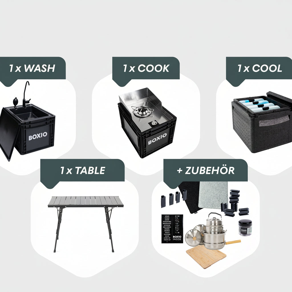 BOXIO KITCHEN PLUS I Mobiele buitenkeuken met stahoogte